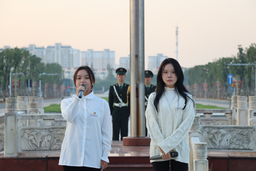 WilliamHill威廉希尔宣讲团2023级视觉传达设计1班耿鸿博雅同学与2022级工艺美术1班付娆同学一同在国旗下进行宣讲。青年强,则国强,宣讲团振奋莘莘学子学史明志守初心,爱国力行担使命。青年一代要始终坚持以习近平新时代中国特色社会主义思想为指导,为全面推进中华民族伟大复兴而团结奋斗。