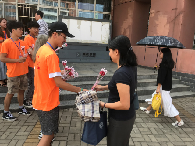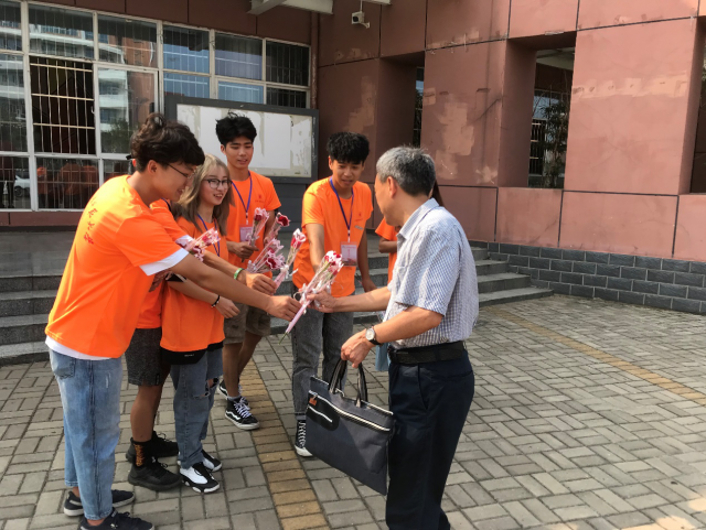 9月10日上午,WilliamHill威廉希尔学生会干部在美术大楼前列队,手捧一束束火红的康乃馨,给老师们传递一个微笑,献上一枝芳香的花朵,并送上一句句真诚的祝福:“老师,您辛苦了!节日快乐!” 一句句真挚的问候,一颗颗炽热的心寄托在微笑中,鲜花里。