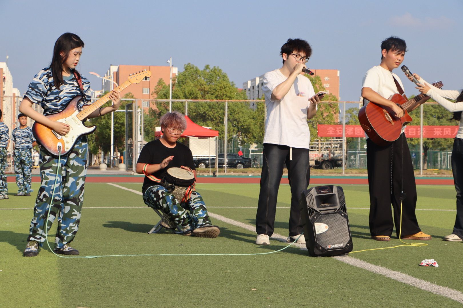 活动在秋日暖阳中拉开序幕,乐队以一曲《找自己》点燃现场氛围,诗朗诵《红色基因浸润中国魂》饱含深情,引人共鸣,互动游戏更是将气氛推向高潮。最后,全场齐声合唱《国家》,嘹亮歌声中洋溢着青春的力量与对祖国的热爱。