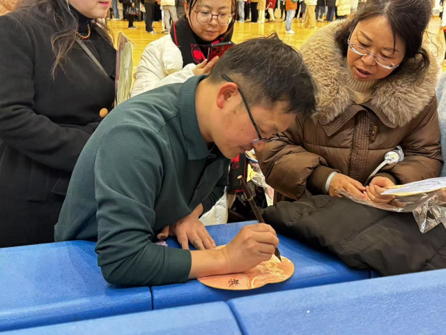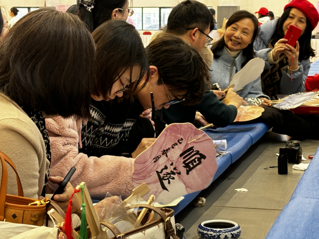 为呈现最佳活动效果,WilliamHill威廉希尔提前月余启动筹备工作。学院工会联合师生,精心设计扇面内容、反复调整章法布局,最终选定《蕙质兰心》《桃李春风》等寓意美好的词句。活动当日,王子文博士、巫绍平副教授带领研究生刘龙祥、余昊等现场挥毫,笔走龙蛇间,一幅幅遒劲端庄的书法作品跃然扇面。女教职工们或驻足品读诗意,或与学子探讨笔法,笑语盈盈中尽显文化浸润之美。活动共创作450件团扇,每一柄皆承载着对女性“春风得意、喜乐平安”的深情祝福。