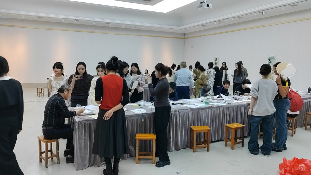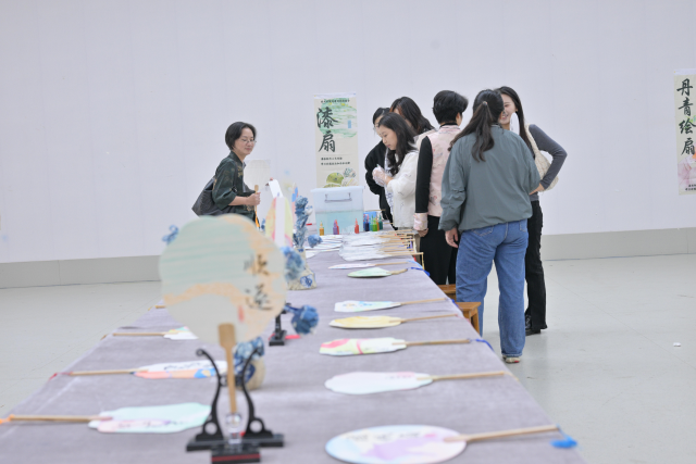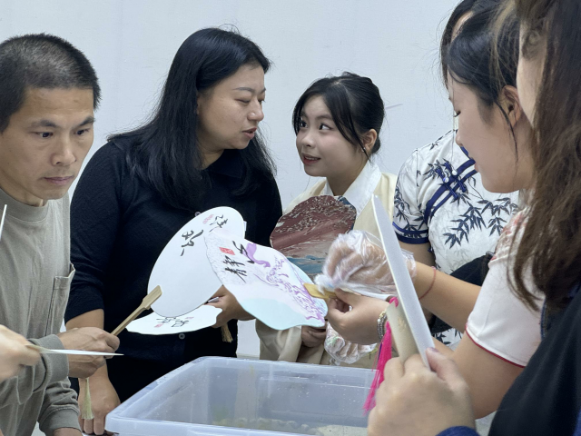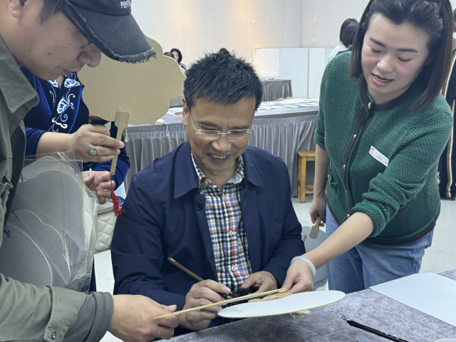“非遗体验区”集聚了篆刻、漂漆、扇面绘制等手工技艺展示与体验。篆刻老师手把手传授技艺,帮助大家雕刻出精美的篆刻印章;在漂漆老师的指导下,教师们创造出独一无二的漆艺作品;扇面绘制则成为教师们发挥创意的舞台,传统艺术的精致美感跃然扇上。