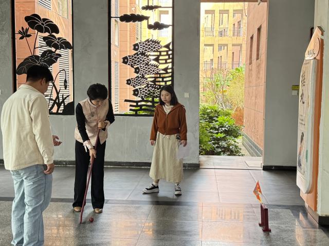 在“非遗运动区”,设有投壶、蹴鞠、捶丸、木射、射箭等传统体育项目,让教职工们体验到传统运动的趣味与挑战。猜灯谜环节,则融入了传统民俗的智慧与趣味,大家在欢声笑语中体验中华礼仪与文化的深厚底蕴。