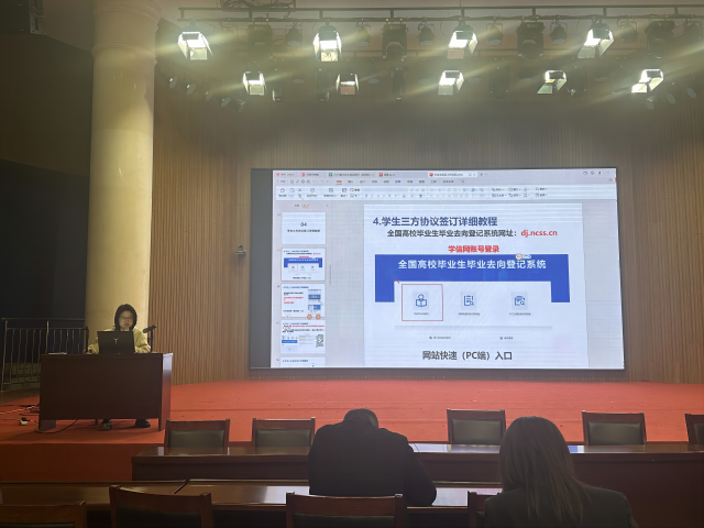 会后,学院就业专干姜书涵针对2024届毕业生就业工作进行了业务培训,就收集就业协议书、就业合同、就业证明等过程性材料进行讲解。