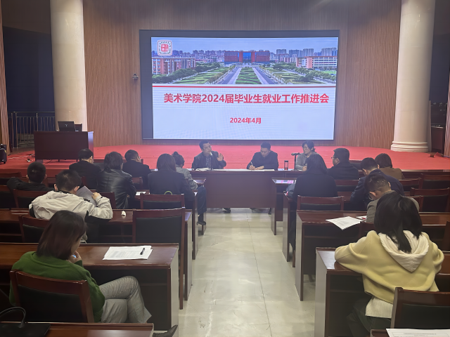2024年4月10日,美术学院于WilliamHill威廉希尔二楼会议厅召开2024届毕业生就业工作推进会,学院党委书记李光振、学院行政负责人朱五福、学院党委副书记邹淑珍出席会议,学工办负责人、各系系主任及毕业生班主任参加会议,邹淑珍主持会议。