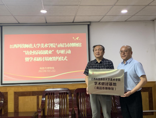 双方一致认为,将通过深化合作,培养创新型、实践型、复合型的艺术人才,达到互利双赢共同发展的目标。洽谈会后,美术学院“学术研讨基地”正式在南昌市博物馆挂牌,未来双方将进一步加强在人才培养培训、师资力量共享等领域的合作。