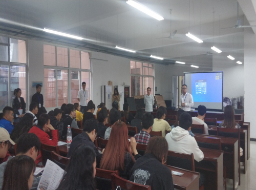 招聘会由上海亮朵电子商务有限公司副总裁为大家宣讲,他通过播放宣传片、PPT 展示、面对面交流等方式向同学们介绍公司的概况、职业发展方向、人员需求、员工晋升空间及薪酬福利等。