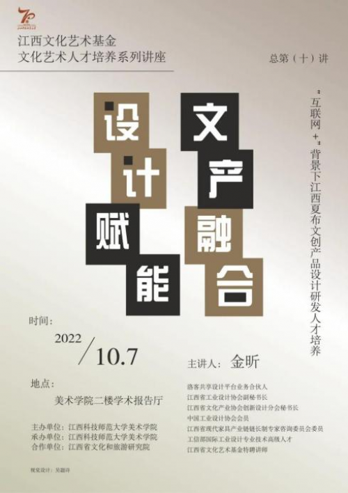 10月7日,洛客共享设计平台业务合伙人金昕围绕“设计赋能,文产融合”的主题为江西文化艺术基金艺术人才培养资助项目《“互联网+”背景下江西夏布文创产品设计研发人才培养》研修班的学员们展开专题讲座,以资深文创从业者的视角为学员们传递来自市场一线的声音。