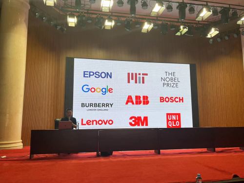 杨超教授从四个方面阐述了他的创作作品,同时向师生介绍其的设计道路即实践创作--理论研究---反哺实践创作。他重点介绍了2015--2016年期间获得的德国红点奖--至尊奖作品,分享了其在创作过程中的心路历程以及如何运用特殊的材料工艺将中国元素进行再设计,同时也向师生分析了他的“西情东韵”奔驰汽车标识设计、校标设计、陶瓷软装设计的运用和推广以及“印象西湖品牌设计”等优秀成功案例。通过对案例的分析启发师生如何运用平面设计材料进行科技转化从而使设计价值最大化。