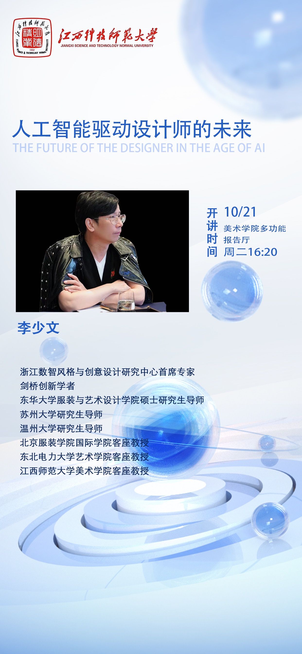 【专家简介】李少文,浙江数智风格与创意设计研究中心首席专家,兼任中欧时尚研究院时尚EMBA校友导师、东华大学服装与艺术设计学院硕士研究生导师、苏州大学研究生导师、浙江理工大学服装学院校外导师、温州大学研究生导师、北京服装学院国际学院客座教授、东北电力大学艺术学院客座教授、江西师范大学WilliamHill威廉希尔客座教授。荣获伦敦艺术大学-中央圣马丁艺术设计学院“全球时尚CEO”荣誉、剑桥创新学者等称号。