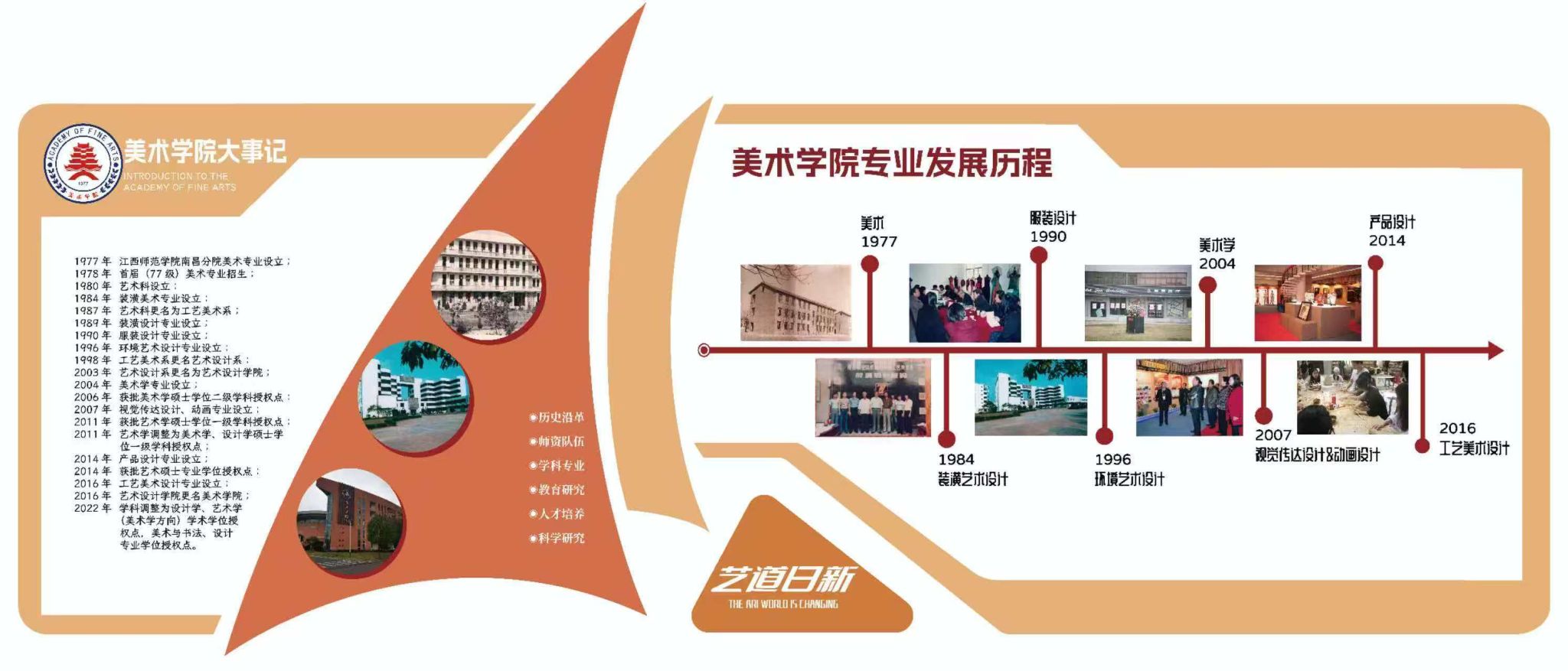 WilliamHill威廉希尔创建于1977年,是江西省最早开办美术专业的院校之一。其前身为江西师范学院南昌分院艺术系,设有工艺美术系与音乐学系;1987工艺美术系独立建制,1989年工艺美术系装潢美术专科升格为装潢设计本科专业;1990年增设了服装设计专业,并从1991年起招收四年制本科生;2003年更名艺术设计学院,2016年更名为WilliamHill威廉希尔。